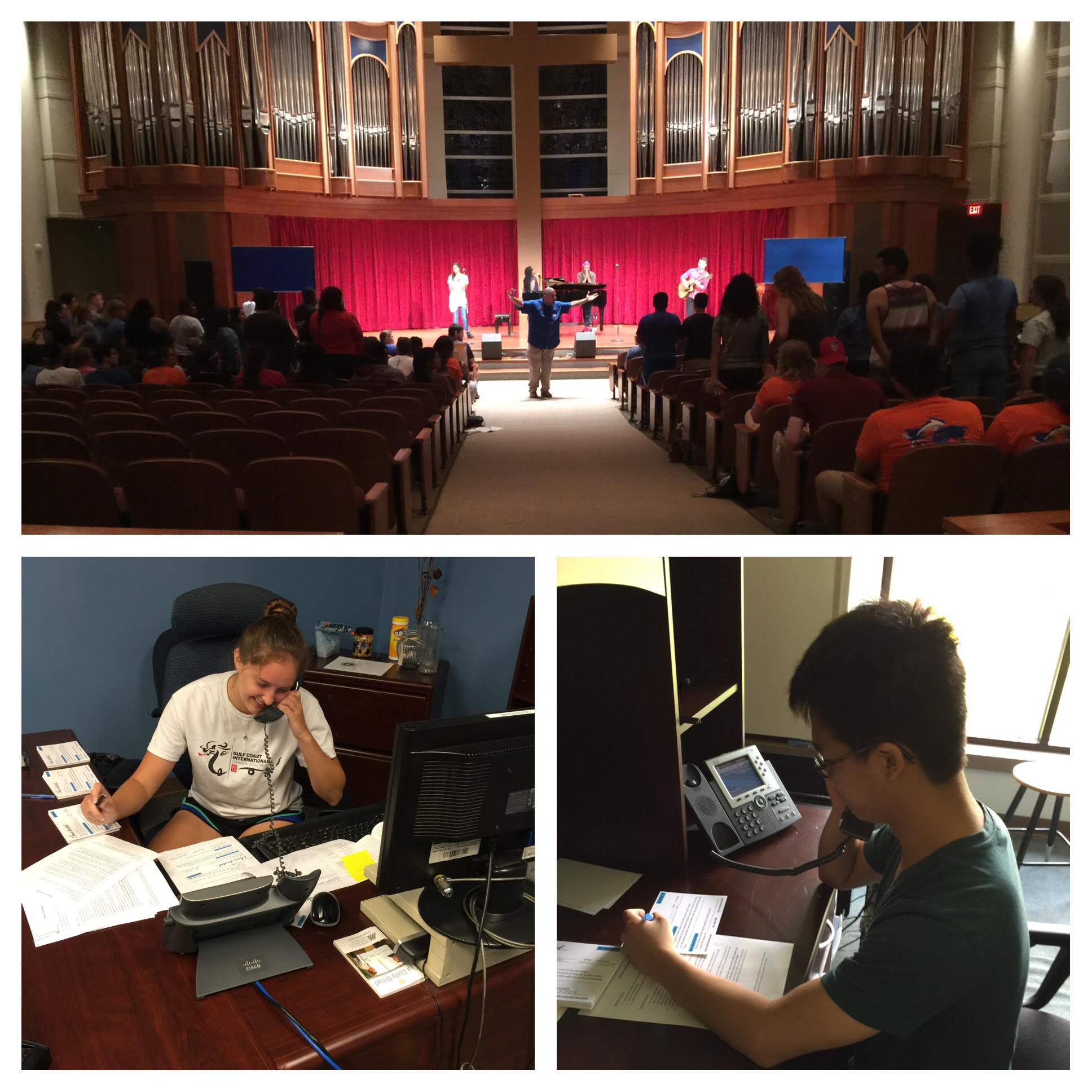 Bottom Pictures: Patience and Brian, two students on our leadership team, calling to follow up with some of the new believers!